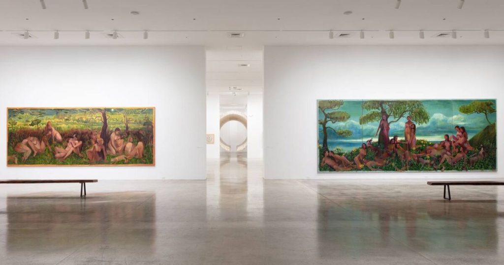 At the same time, this year’s refresh prioritizes the present. The couple has maintained a reputation for collecting cutting-edge art and this year, seven young artists are making their Rubell Museum debuts: artist Emmanuel Louisnord Desir, figurative painter and sculptor Omari Douglin, installation artist Patrick Goddard, interior painter Michelle Uckotter, portraitist February James, sculptor Murjoni Merriweather, and illustrative artist Slawn. For many of these names, this month also marks their first institutional showcase.