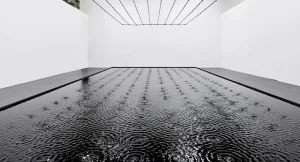“The installation is akin to a spatial embodiment of a living Talmudic page: a text devoid of letters, in which knowledge crystallizes through lingering, gaze, and attentiveness,” a description of the pavilion sent to ARTnews reads. “The meaning of the installation emerges in the tension between one drop and the next, between presence and absence, calling upon the viewer to become an active participant in an ongoing experience of time, memory, and consciousness.”