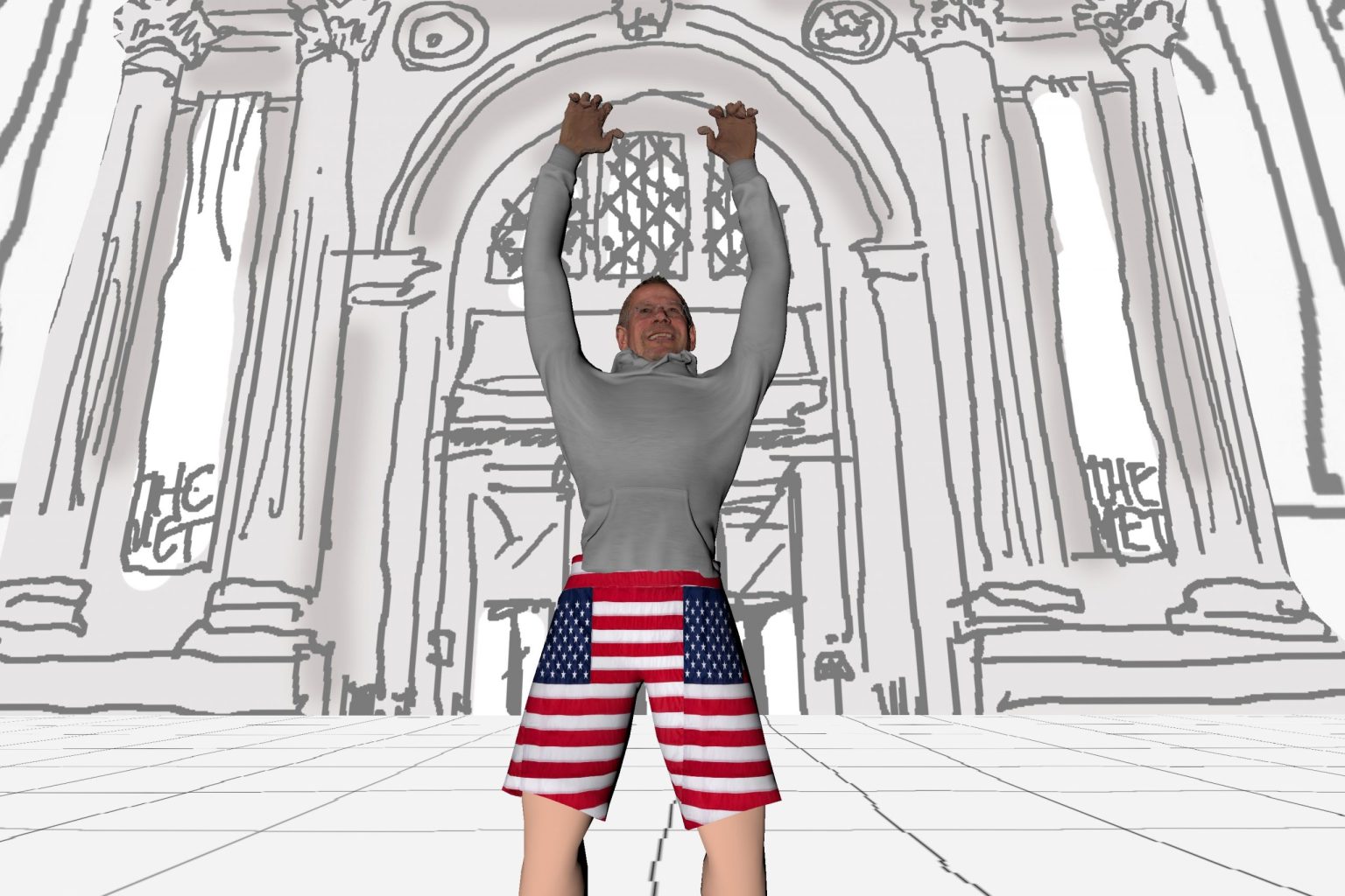 Last month, I walked past the nearly 82-year-old Golub inserting the key into the door of his townhouse, when he caught sight of me and bellowed, “What are you doing on my street? I mean it!” I reiterated (loudly) the riposte I’ve lobbed on occasions past, “You need anger management, you’re 8 years old, act your age!” Though I’m fearless behind my keyboard, I’m pretty much a coward in most other circumstances—and even elderly, Golub is super fit. I’ve resorted to watching YouTube videos on how to defend myself and, like an art-world version of Rocky (featuring Woody Allen standing in for me instead of Stallone), training on the stairs of the Met.