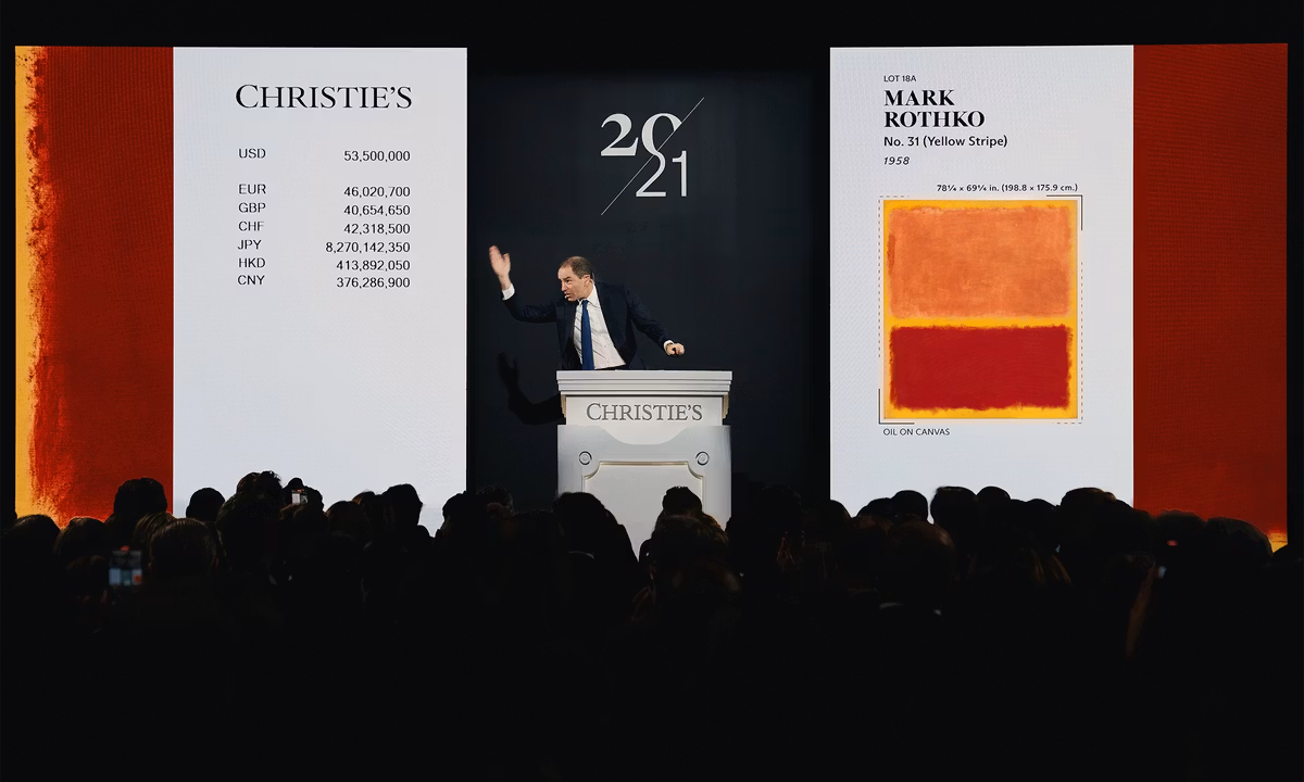 The star lot of the evening was Mark Rothko’s luminous abstraction No. 31 (Yellow Stripe) from 1958, which made $53.5m ($62.1m with fees). The unpublished estimate was accurately pegged as in the region of $50m.