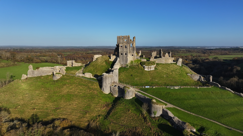 Shortly after invading England in 1066, William the Conqueror began consolidating power. Building castles was a primary means of asserting dominance and over the proceeding 150 years William and his Norman descendants would raise more than 1,000 structures. Corfe Castle, which commands the Purbeck Hills in Dorset on the country’s south coast, was among the first.