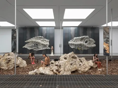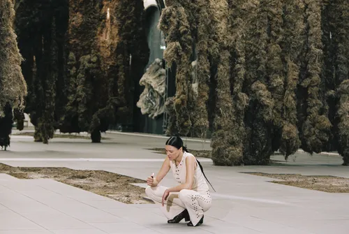 It was a cold January afternoon when 35-year-old Czech artist Klára Hosnedlová arrived in London to install “Echo,” her debut solo show at White Cube (on view at the gallery’s Bermondsey branch through March 26th). Technicians with forklifts worked in the background, building the latest of her imagined landscapes: enigmatic mixed-media environments embedded with cultural and historical references. As we walked around, I felt like I’d landed on a strange new planet. Yet Hosnedlová’s work always begins with an assessment of her site’s existing structures. “It’s to feel the space, to feel its architecture and energy, to play with how I can occupy and change the emotion of the space, in a fragile way,” Hosnedlová said. “For me, the artwork always connects with the space.”