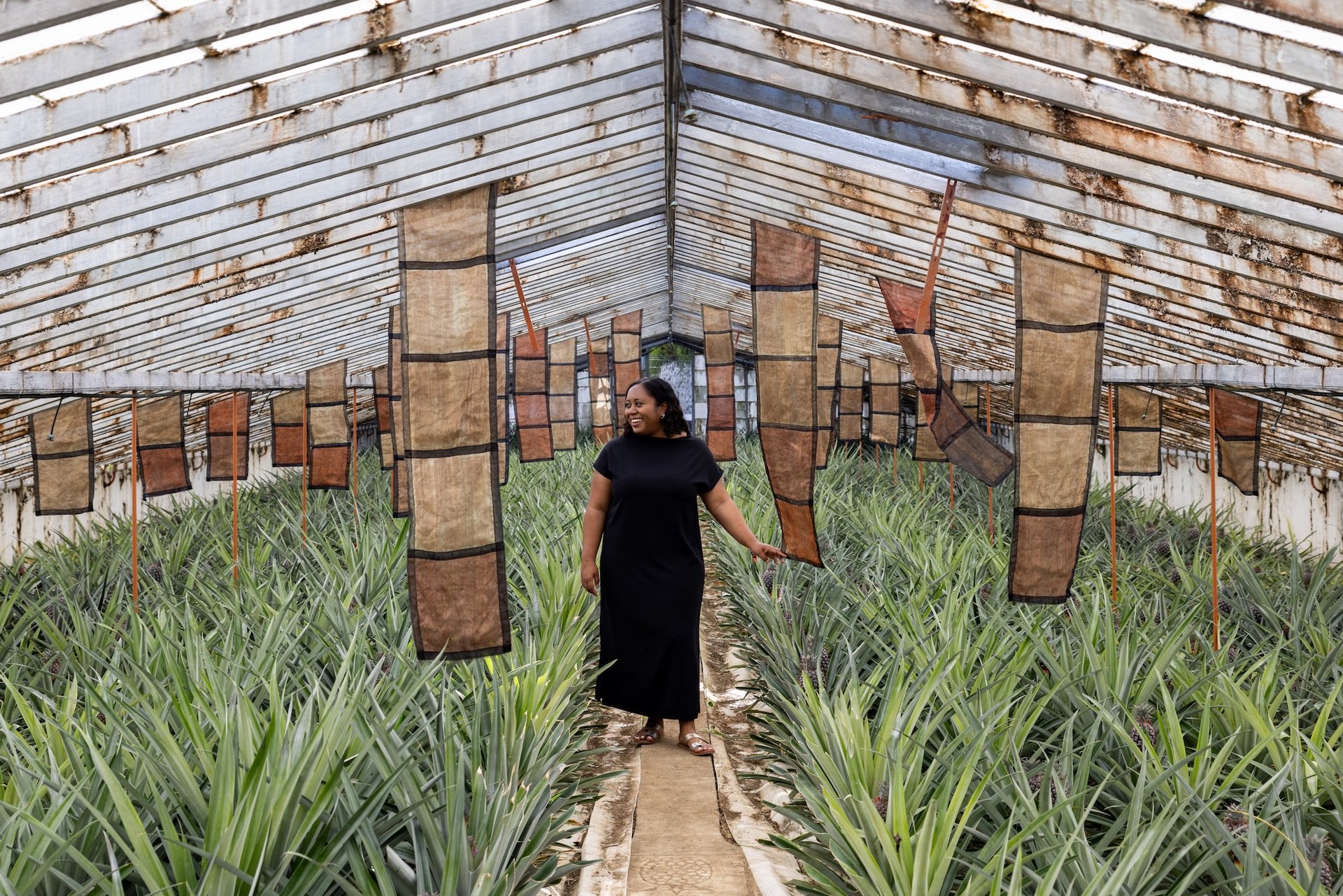 The Azores are known for their pineapples, which are uniquely small, extra sweet and grown in greenhouses. A couple of these greenhouses play host to new works by the Ghanaian Filipino artist Mae-Ling Lokko, who created textiles from pineapple fibre and leaves. She says she was “exploring where pineapples had formal friendships”, pointing out that her homelands of Ghana and the Philippines are both pineapple producers as well.