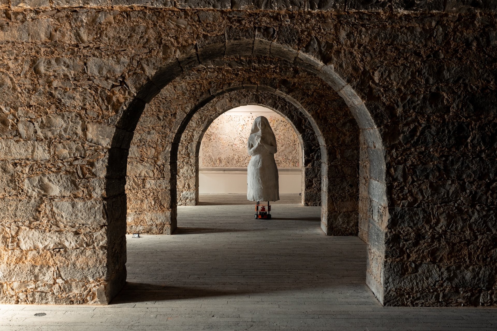 Perhaps the most enduring cultural influence on the islands is that of Catholicism—more than 90% of the archipelago’s population is Catholic. At Walk&Talk, this manifests most conspicuously in the religious architecture of many of the buildings hosting its exhibitions. But several artists also chose to interpret the islands’ religious history and culture. In Arquipélago’s dramatic stone basement, the Italian artist Alice Visentin let loose her robotic nun—an homage to Madre Margarida do Apocalipse, who in the 19th century created a giant, intricate diorama of biblical scenes with thousands of tiny figurines made from bread, resin, shells and other found materials. In a couple of biennial spaces, visitors can see the traditional Azorean folk-art clay figurines that started out as religious in theme but now include Disney princesses and other pop-culture references.