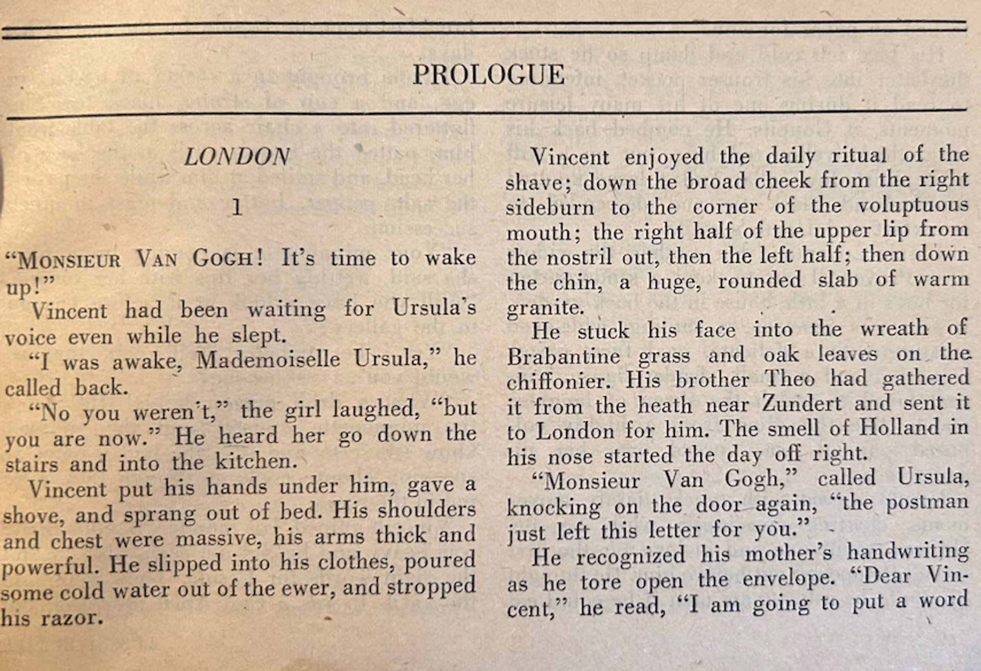 The prologue of Lust for Life, printed on the now-browned paper of the Armed Services Edition Photo: The Art Newspaper