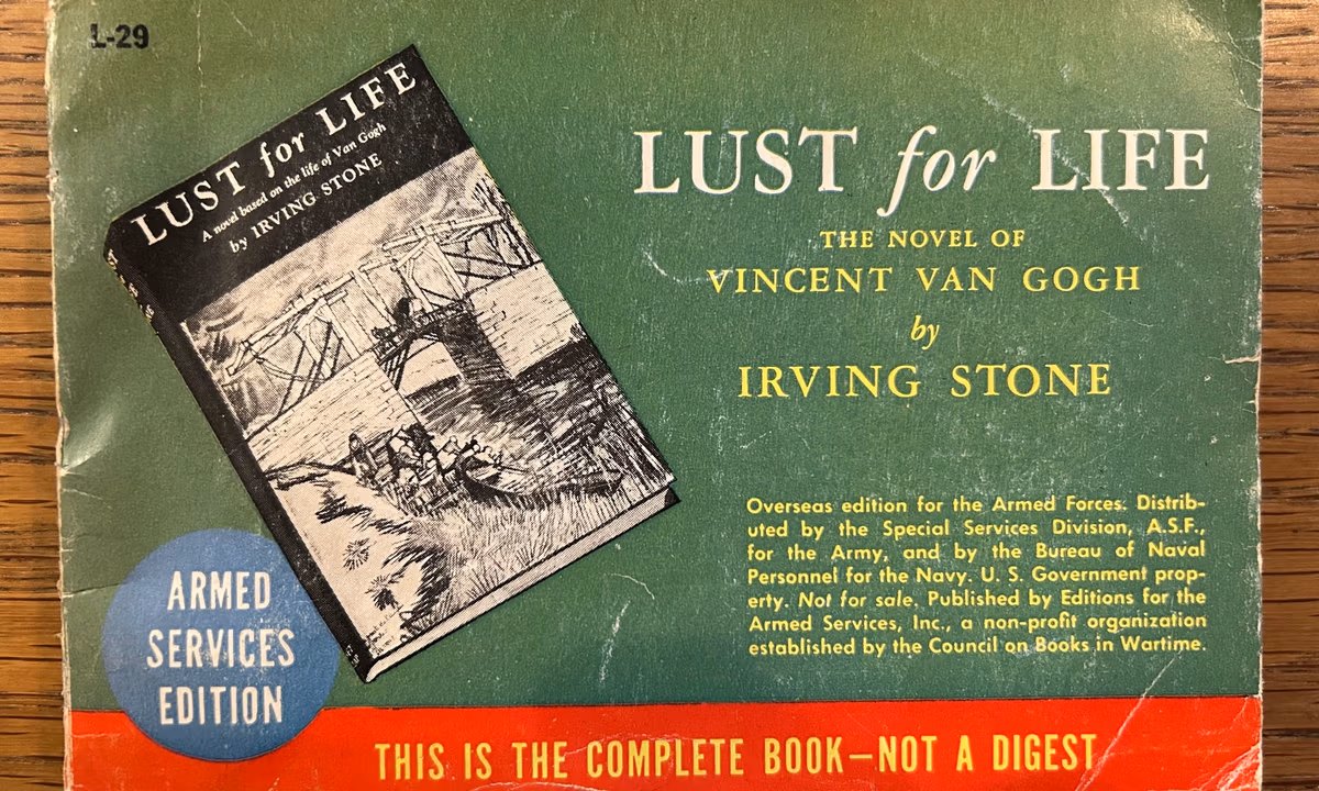 Irving Stone’s 1934 bestseller Lust for Life: A Novel based on the Life of Van Gogh has sold over 25 million copies, but the most unusual edition in English is one produced during the Second World War for US forces serving overseas. Lust for Life was only one of the 1,322 titles that were published as an “Armed Services Edition”, in a special format that was designed to be troop-friendly.