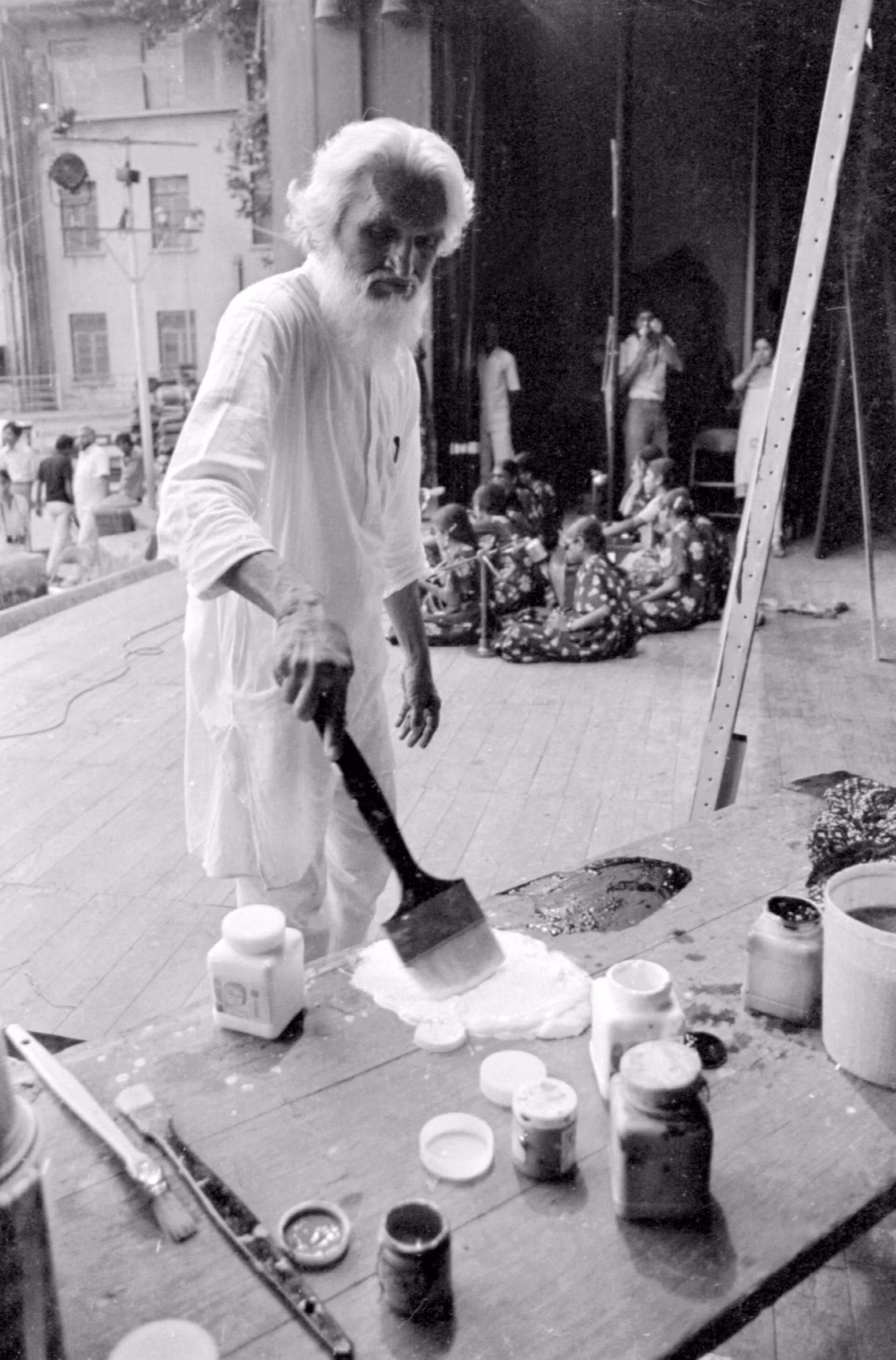The move to Qatar coincided with the final refinements of Husain’s late style. In the 1980s, he had moved away from “thick impasto” to “flat blocks of colour juxtaposed around each other”, Pundole says. “I asked him why and he said, ‘It’s very easy for me to romanticise an image with thick paint on the canvas, so this was a new challenge to me.’” The development of a new visual style went hand in hand with a willingness to tackle self-consciously big themes, particularly after he became the subject of fevered controversy in India. He began to experiment with new forms of storytelling, immersive environments and public engagement.