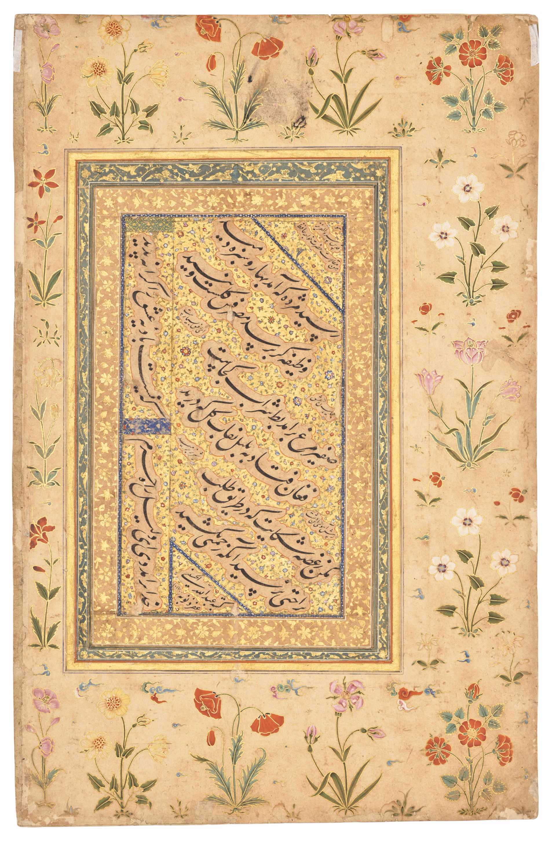 One side of a folio from the Brabourne-Ardeshir album with calligraphy signed Abdullah al-Husayni, Mughal India