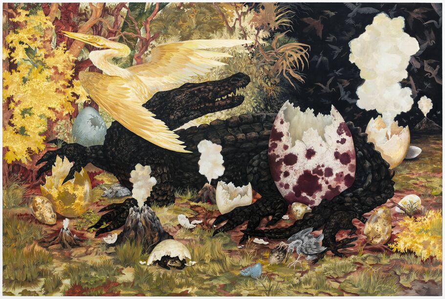 The nonprofit foundation Marquez Art Projects (MAP) is known for giving emerging artists space to debut ambitious solo exhibitions. This year, MAP presents Kat Lyons’s solo debut at a U.S. institution. In her show of paintings, titled “Full Earth,” Lyons turns to Florida’s landscape—especially the Everglades—creating vivid scenes populated by crocodiles, volcanic terrain, and Florida’s wild macaques. The works explore how the natural environment can be a record of memory and change. Drawing on lived experience and wide-ranging research (from scientific to art historical), Lyons brings animals, plants, and the land into scenes that feel both grounded in natural history and deeply uncanny.