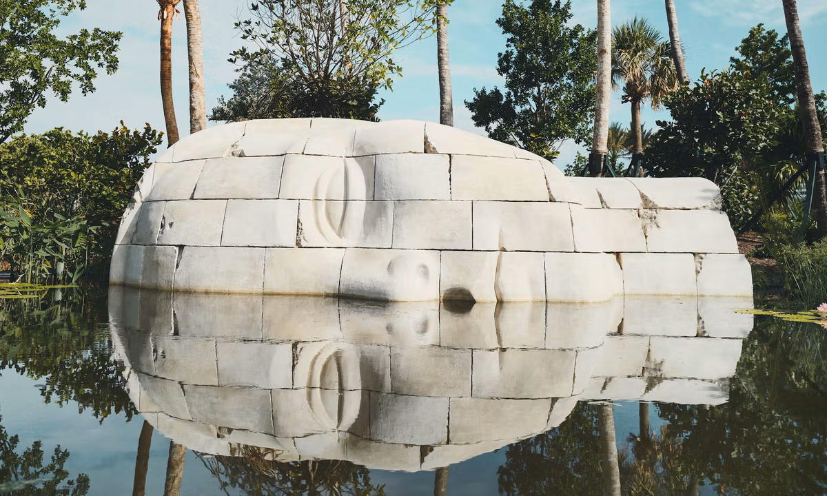 “I was inspired by the history of monumental sculpture, like Olmec heads and images of the Statue of Liberty, where you see just a piece of the head,” says the French-born artist, who works between New York and Paris. The interaction between the work and its garden is a collaboration with the Miami-based landscape architect Raymond Jungles. “There is something very poetic in the symbol of water and with the Coast Guard,” Nourry says. “It’s all about that fine line between the lands and the sea.”