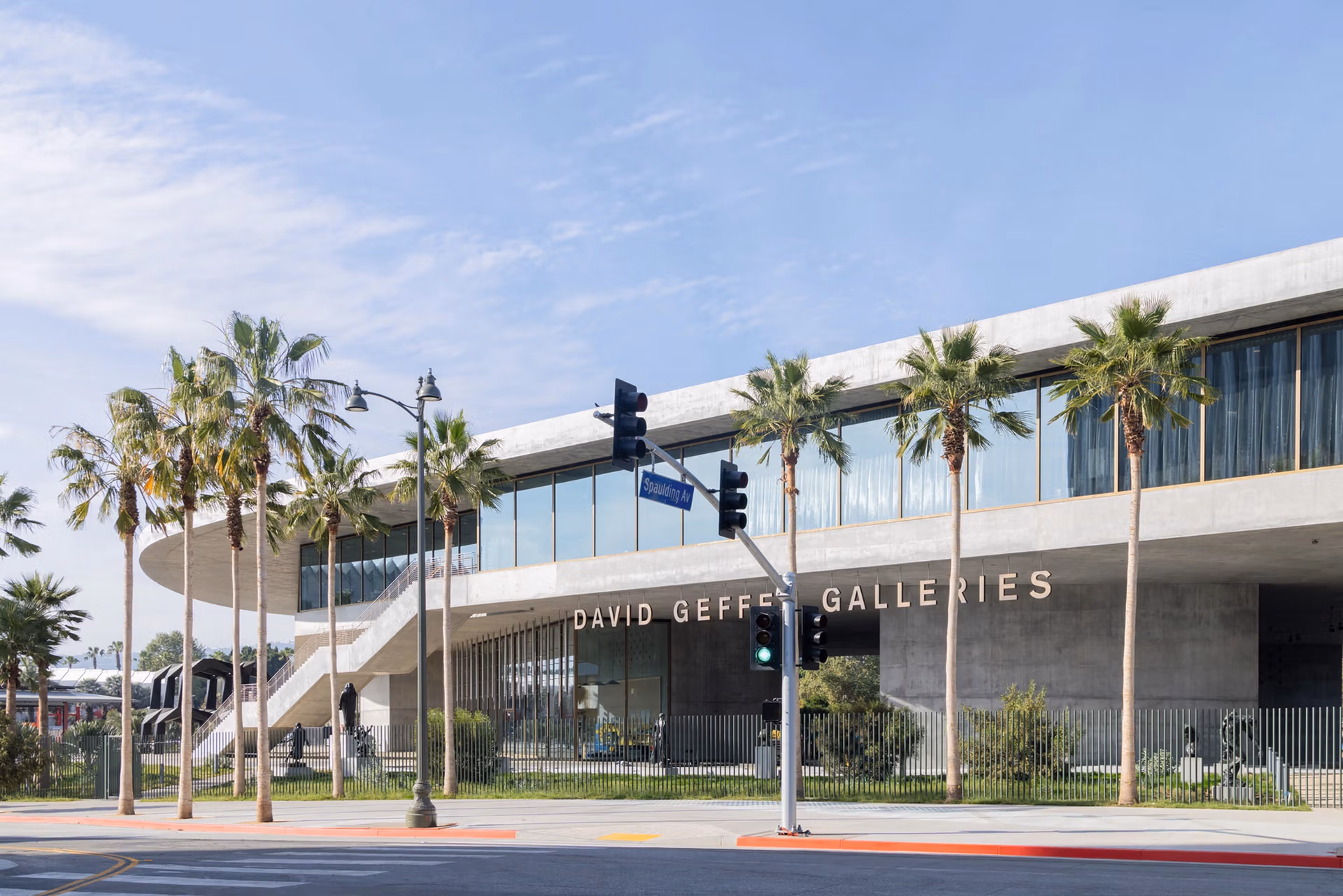 Exterior view northwest from Wilshire Boulevard, David Geffen Galleries at LACMA