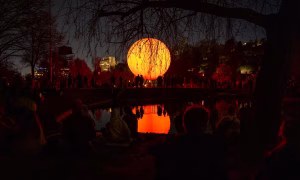For ten days between 26 March and 4 April, Olafur Eliasson presented A symphony of disappearing sounds for the Great Salt Lake, a multimedia installation projected onto a luminous sphere in Memory Grove Park, a public green space tucked into one of the Salt Lake City’s seven canyons below Capitol Hill. It was the Icelandic Danish artist’s first public work in Utah.