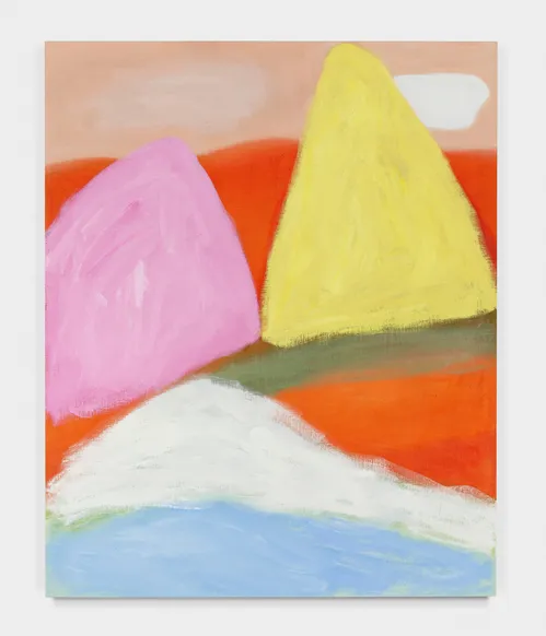 I first saw Jongsuk Yoon’s paintings at her U.S. solo debut, “Yellow May,” at Marian Goodman Gallery Los Angeles in 2024. I was instantly taken with her large-scale, abstracted landscapes, in which bright and pastel color fields suggest mountains, water, earth, and sky. A sense of harmony prevails across her dreamy, brushy compositions, even when they depict sites of conflict: The Korean German painter has previously referenced North Korea’s Kumgangsan, or “Diamant Mountain,” as a symbol of the country’s traumatic division.