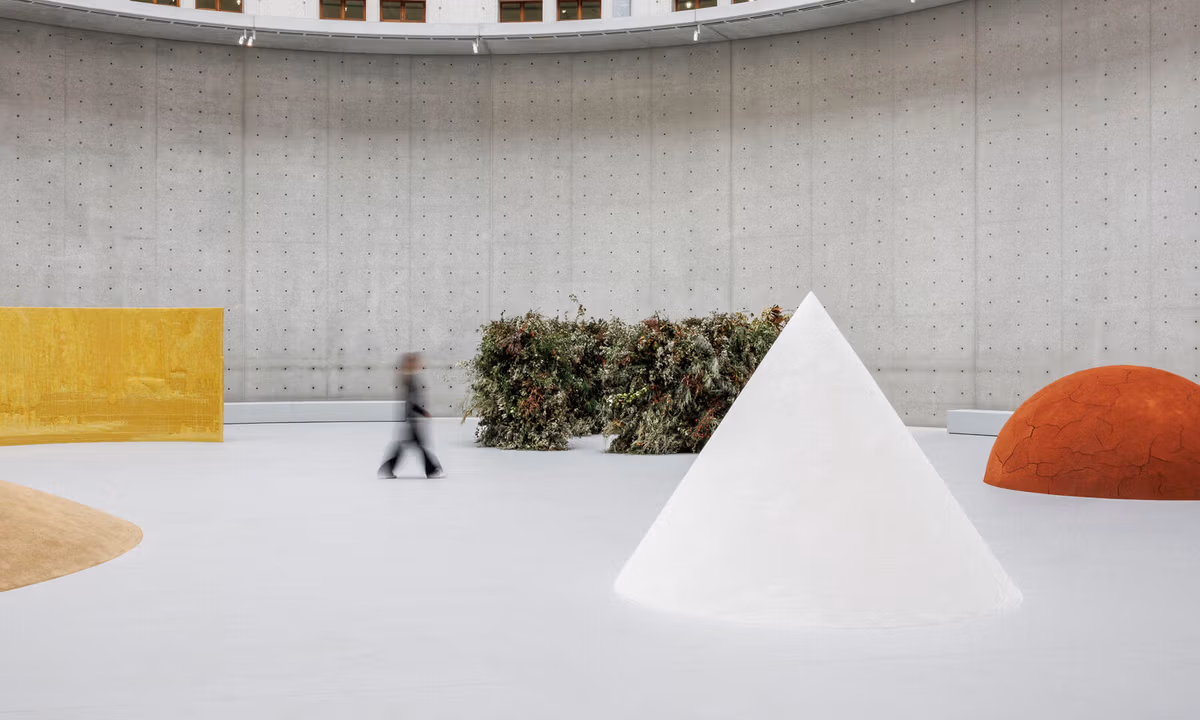 Under the grand glass dome of the 19th-century Bourse de Commerce in Paris rises a pristine cone of salt, nearly two metres high. Nearby, a low circular mound of powdery yellow ochre sits next to a hemisphere of cracked red clay. Opposite, a wall of translucent fragrant beeswax curves away towards a circular enclosure formed from interwoven branches, foliage and berries. This dramatic, delicate quintet of works by the 81-year-old US artist Meg Webster forms the striking centrepiece of Minimal, a groundbreaking exhibition curated by Jessica Morgan, the director of the Dia Art Foundation—a show devoted to demonstrating that the language and aims of 1960s and 70s Minimalism extended way beyond the usual white, male US suspects.