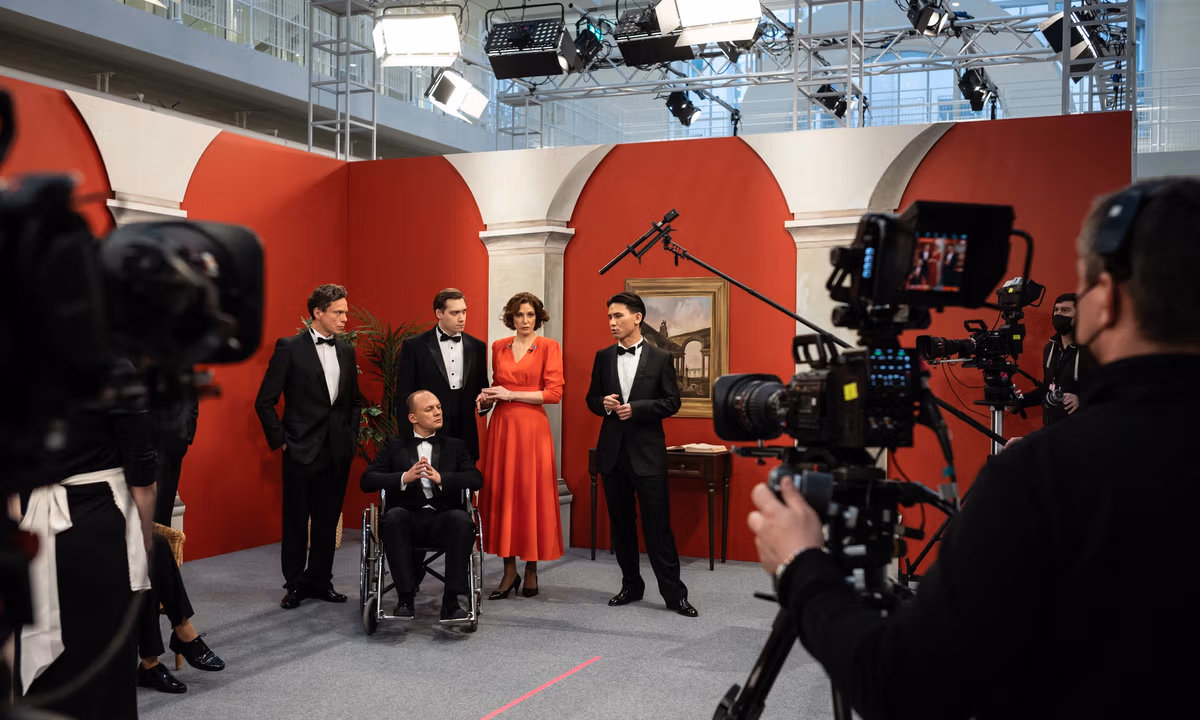 Kjartansson’s original performance featured a restaged production of the American TV show Santa Barbara, which aired in Russia from 1992 to 2002, making it the country’s longest-running series. During the performance, Russian and Ukrainian actors recited the lines in Russian inside a former power station, where Ragnar Kjartansson and his team built a sprawling production complex of sets, a costume department, and an editing studio open for visitors to explore during filming.