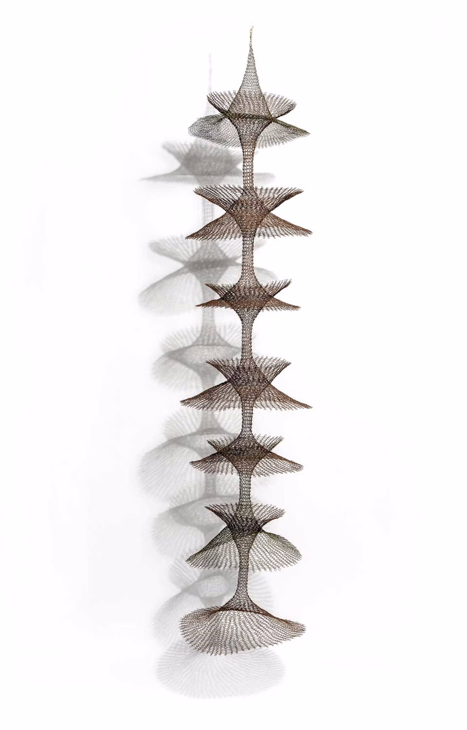 Ruth Asawa’s tied-and-looped-wire sculpture, more than eight feet tall, hangs in In This Light, a Pacific Ocean-inspired gallery dedicated to the interplay between light and shade. As natural light filters into the north-facing space, the sculpture’s diaphanous, cascading forms cast intricate shadows across the concrete, causing the work to register simultaneously as a physical object and an immaterial projection. Asawa, born in California in 1926 to Japanese immigrant parents, was unjustly interned, along with her family, during the Second World War. She later studied under the pioneering modernist Josef Albers at Black Mountain College and developed her signature crocheted wire technique after learning basketry from local artisans in Mexico. She turned the inexpensive, industrial material, which is evocative of entrapment, into a means of describing interior and exterior space as a single continuous plane. The sculpture shares the space with other works that leverage surface illumination and transparency, including pieces by Larry Bell and Roni Horn. LACMA’s decorative arts and design curator Bobbye Tigerman hopes the gallery will encourage slow looking and return visits to see it in different seasons and times of day.
