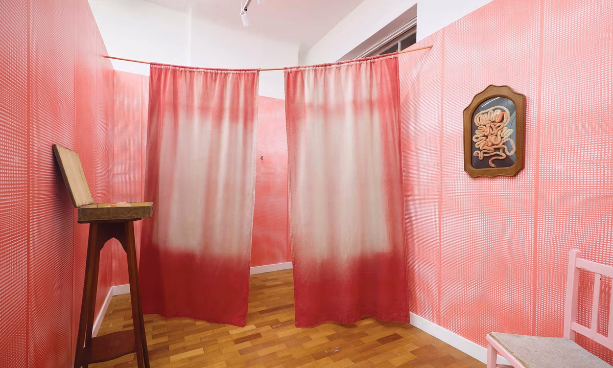 It was not stipulated that galleries bring female artists, though the overwhelming majority have. (Two galleries, Wilder and Gillian Jason, exclusively deal in women.) Lamb Gallery has brought three small paintings by Bea Bonafini (priced at £3,500 each), while Alice Black is showing an installation by Rachael Louise Bailey incorporating, among other things, wallpaper designed from washed-up plastic oyster sacks and a vitrine of Louise Bourgeois-esque intestines. The latter work sold on the opening day for £5,500 to “a significant collection of female artists”, says gallery owner Alice Black.