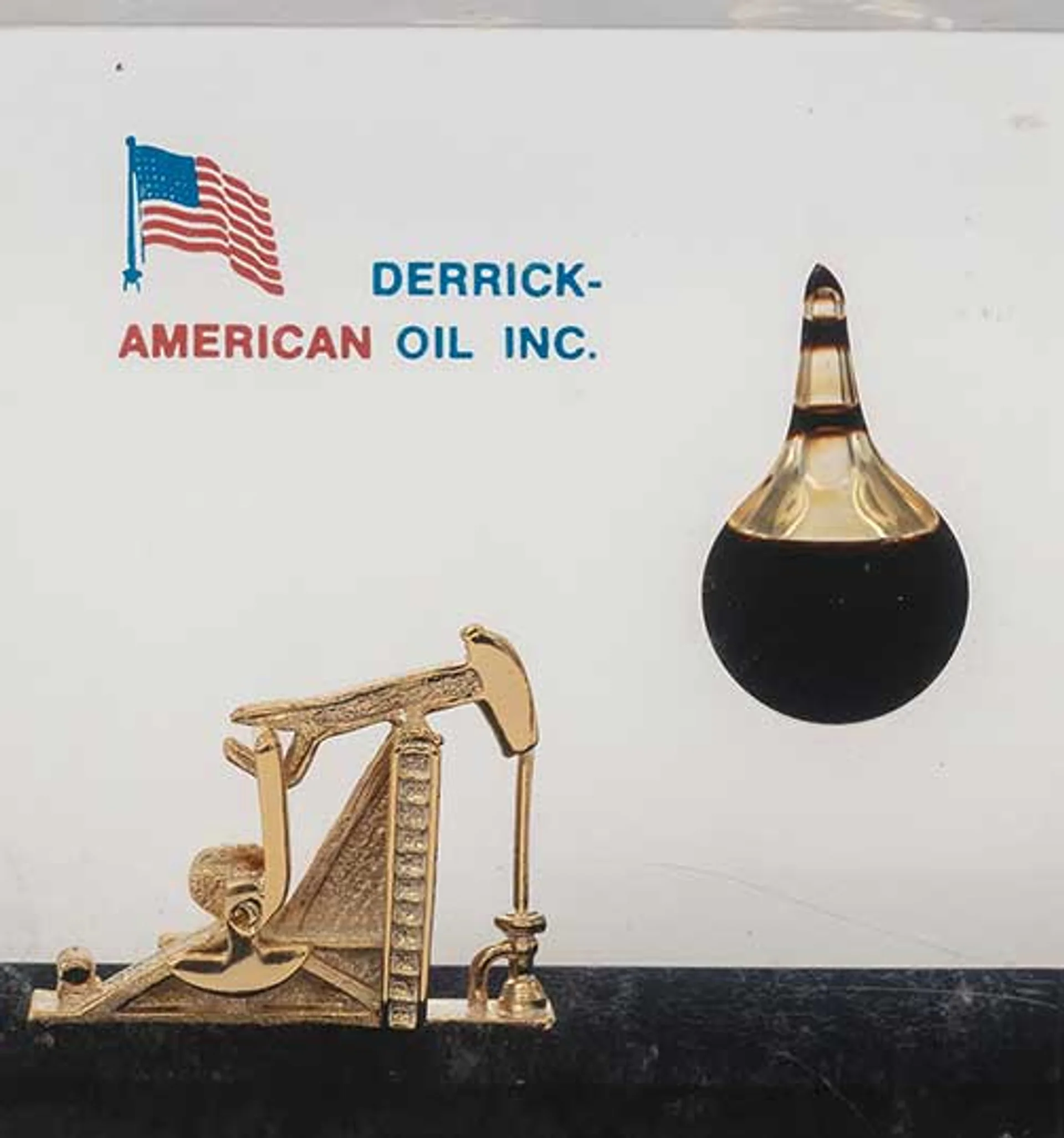 I was initially just curious to see if I could buy crude oil online; to see how accessible it is to the average civilian. Instead of yielding a bottle of crude oil, the first result on eBay was one of these paperweights: a clear acrylic cube with a sand-coloured layer at the bottom. Embedded within it, is a blown-glass teardrop chamber that contains crude oil. I just thought it was the perfect little landscape sculpture.