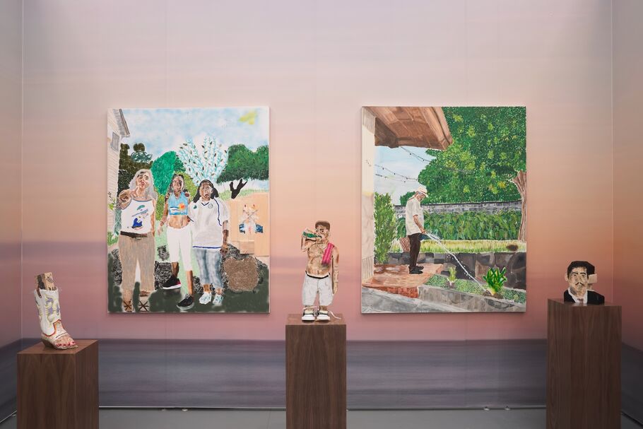Positioned at the heart of the fair, New York–based gallery CARVALHO’s booth benefits from the abundant natural light filtering through the tent, highlighting the wide range of media represented by its three featured artists.