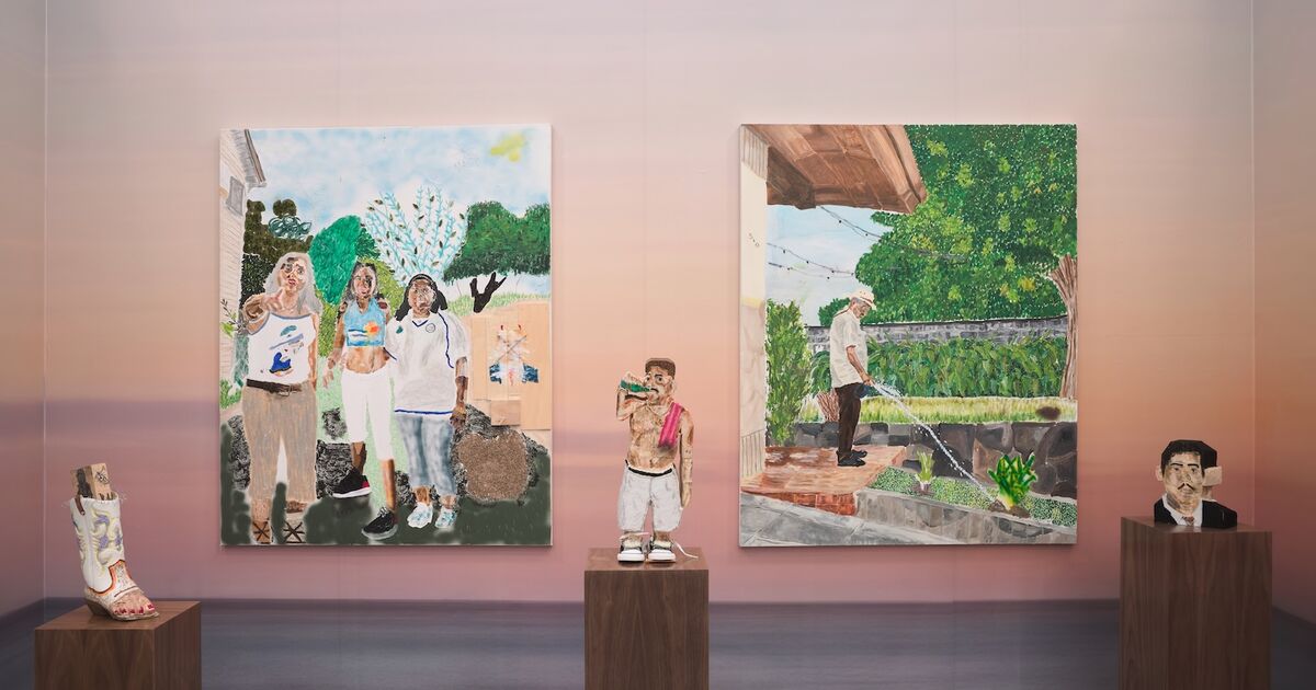The artist has also expanded his practice to include wooden sculptures that depict faces and figures carved from Salvadorian wood he transported back to the U.S. One of these, titled Mi Primer Chela (2025), depicts the artist’s father drinking beer. “With my art, I shine a light to be an example who they champion not just for the family’s legacy, but for my people, ancestors, and those who come after me,” Rivas told Artsy. Works in the booth range in price from $3,000 to $25,000.