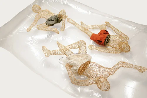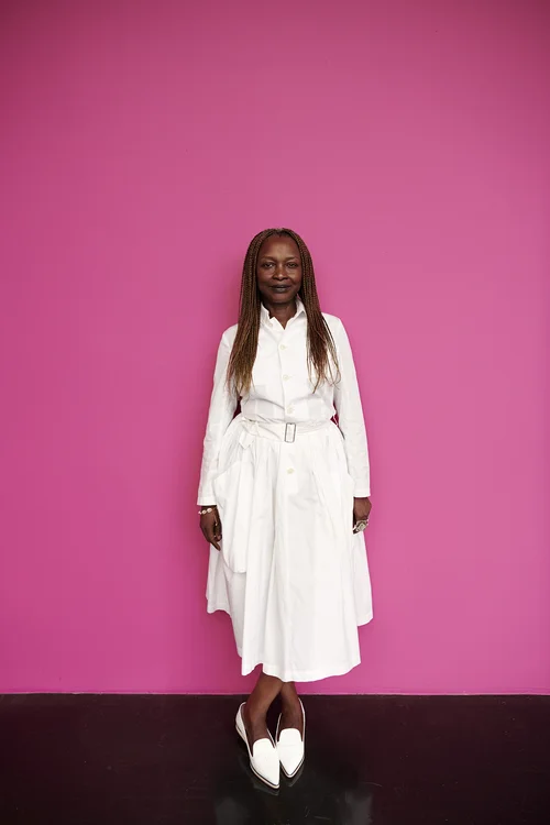 At the center of the exhibition is Shrines, dedicated to the Senegalese artist, poet, and playwright Issa Samb (1945–2017) and the American artist Beverly Buchanan (1940–2015), both key figures in Kouoh’s thinking. Within the Procession motif—shaped by Afro-Atlantic traditions of movement and gathering—artists including Alvaro Barrington, Nick Cave, Pio Abad, Ebony G. Patterson, and Big Chief Demond Melancon engage with collective histories through performance and assemblage. The Rest motif creates space for reflection and repair, with works by artists such as Helen Sebidi, Seyni Awa Camara, and Wangechi Mutu foregrounding material, spiritual, and environmental connections. As part of Kouoh’s Schools motif, artist-led organizations such as Raw Material Company in Dakar, GAS Foundation in Lagos, and the Nairobi Contemporary Art Institution are included, foregrounding spaces of collective learning and exchange.