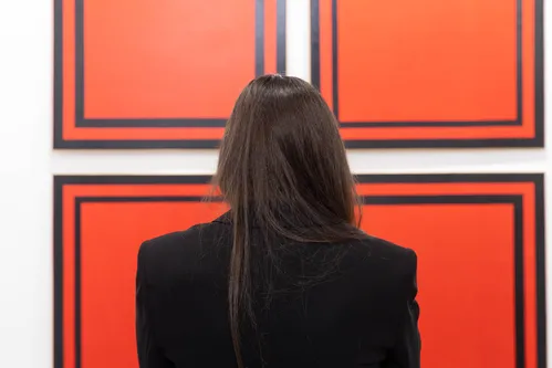 One of the first works greeting guests was Jesús Rafael Soto’s bright yellow Esfera Amarilla (1984) at local gallery Elvira González, an Op art sphere that quickly became a photo stop. The atmosphere was lively and sociable, though a quieter political gesture threaded through the aisles: Several Spanish gallerists wore red stickers in support of a strike protesting the country’s high VAT on art sales, which remains unreformed despite reductions elsewhere in Europe.