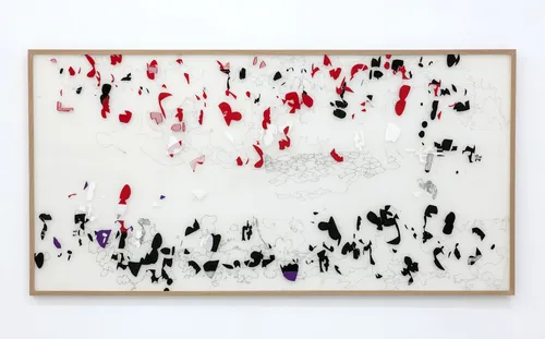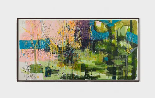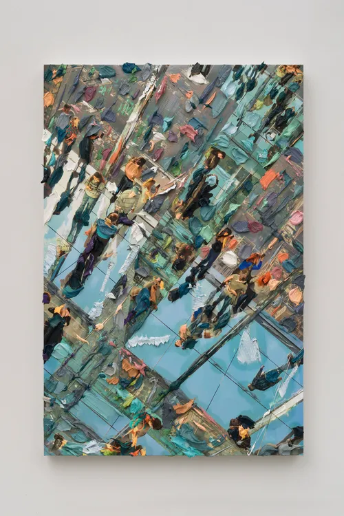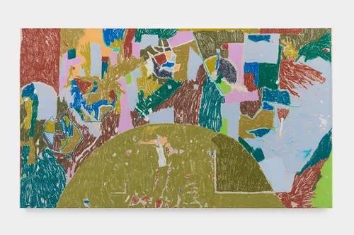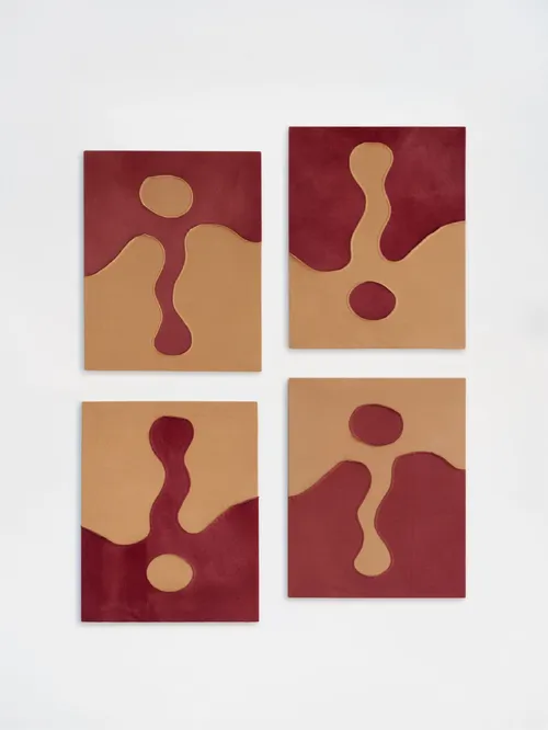 Other highlights include Luiz Zerbini’s works inspired by fireflies and nature’s underlying grids, while Lenhardt reappears with perforated aluminum rectangles framed by enamel ceramics. Janaina Tschäpe’s lively abstract canvas Coração disparado (2025), rendered in oil and oil stick, offers a preview of the artist’s upcoming solo exhibition at the gallery’s São Paulo space next month.