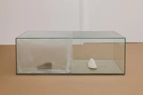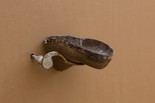 Spanish artist Leonor Serrano Rivas’s work announces itself before it comes into view at Berlin and Madrid gallery carlier | gebauer’s booth: The steady sound of dripping water leads visitors to A Freshwater Serpent (2026), a newly completed sculpture-fountain in which water circulates and spills onto the booth’s floor.
