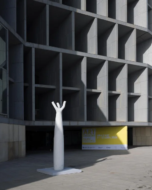 As Art Cologne Palma Mallorca kicked off its VIP day, the city also unveiled a new sculpture installation by well-known French sculptor Bernar Venet outside the venue’s rather beautiful walls. Its spiky steel form, set against the maritime horizon that follows you around in Palma, is typical of the sculptor’s imposing conceptual works.