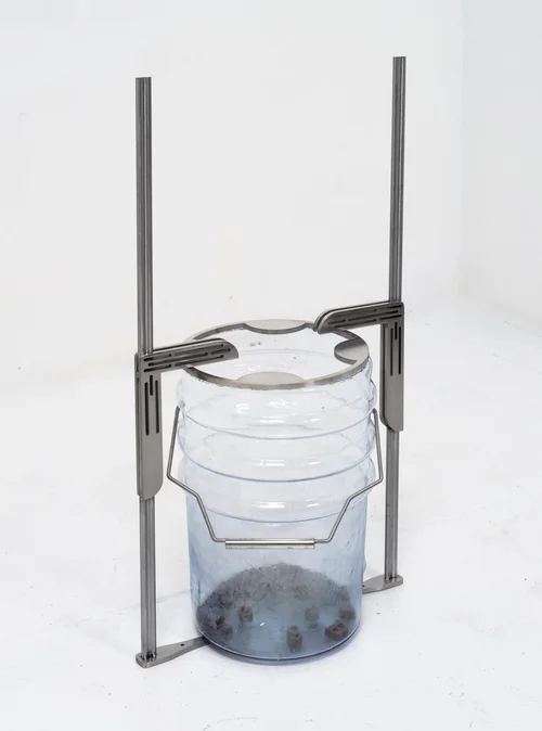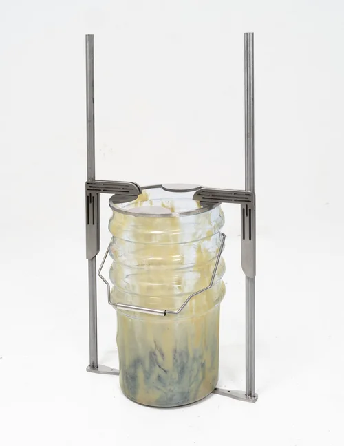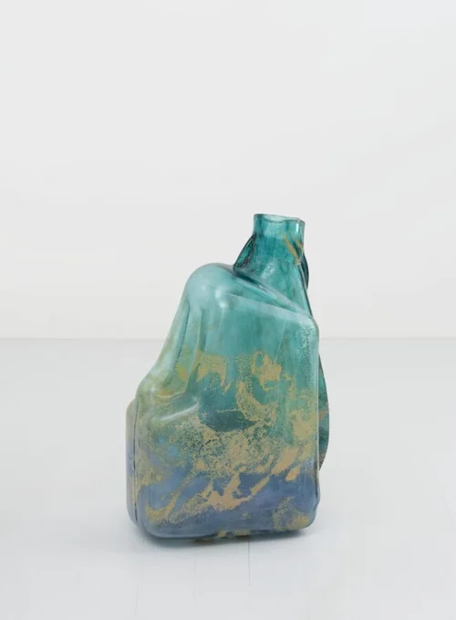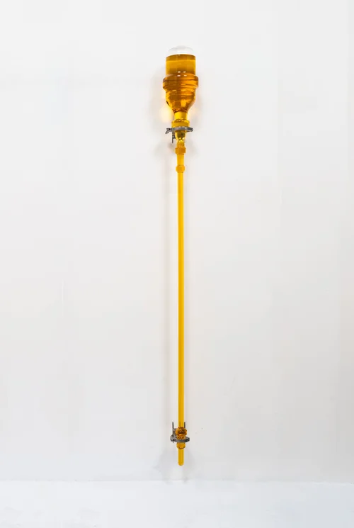 Meanwhile, large glass ampule vials, titled Colorimetric No. 1.1 and Colormetric No. 1.2 (both 2026), typically used for substances such as saline or promethazine that cannot be contaminated by air, sharpen the artist’s interest in containment and in the idea of hyperexposure. Motley explained that these works represent “this tension between a fear of contamination and a desire for sterilization,” and that for both series, Keogh wants us to grapple with how “we can’t ever be separate from our environments.”