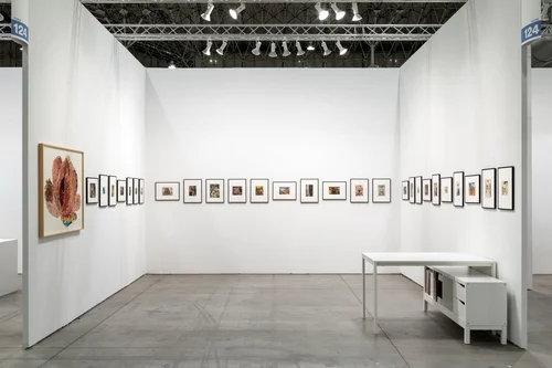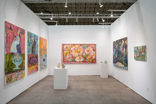 Works are priced between $3,000 and $20,000, with the booth selling out to a mix of private and institutional collections on the first day of the fair.