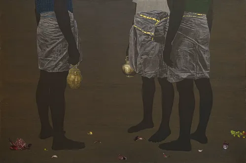 Jhaveri Contemporary’s booth is a powerful display of works that illustrate why the Mumbai gallery is a trailblazing force in the country’s art scene, bringing together a selection of standout South Asian and diaspora artists. Indeed, five artists presented here are featured in the current Kochi-Muziris Biennale.