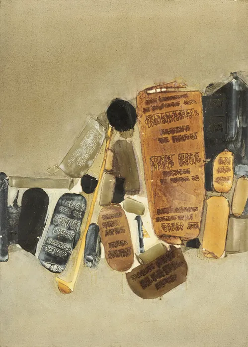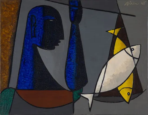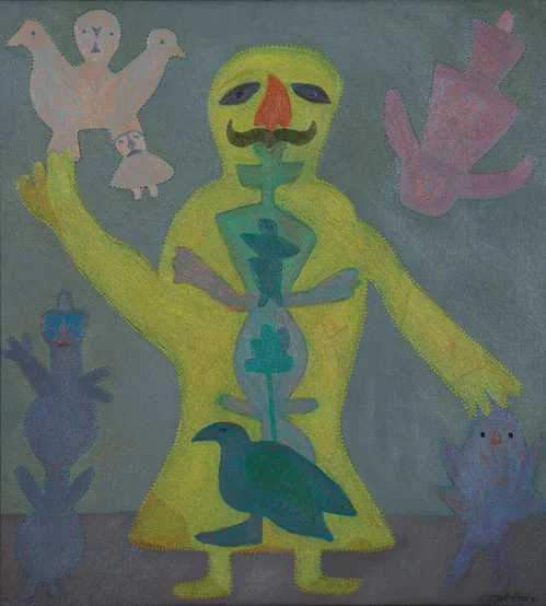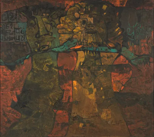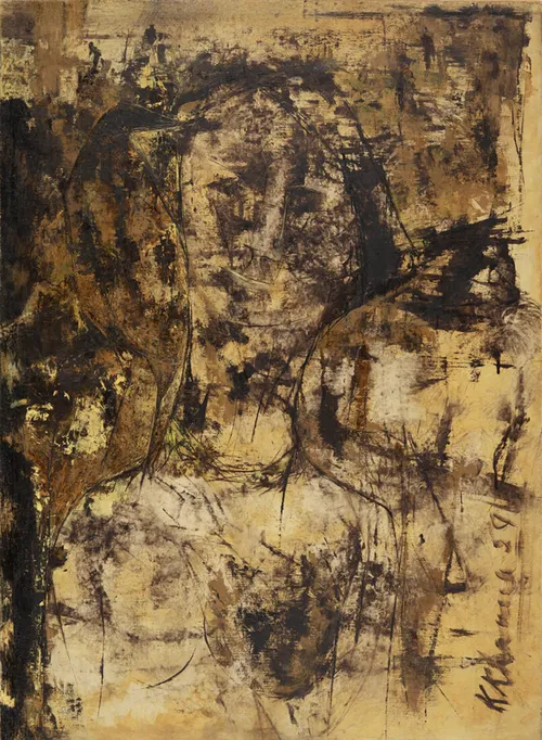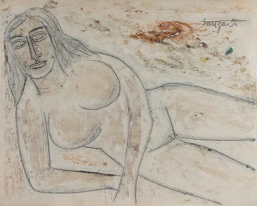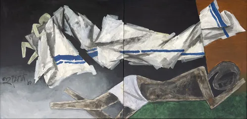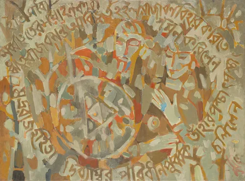 With works by M.F. Husain, F.N. Souza, S.H. Raza, Krishen Khanna, Ram Kumar, Sohan Qadri, Nasreen Mohamedi, K.K. Hebbar, Prodosh Das Gupta, K.S. Kulkarni, and Jamini Roy.