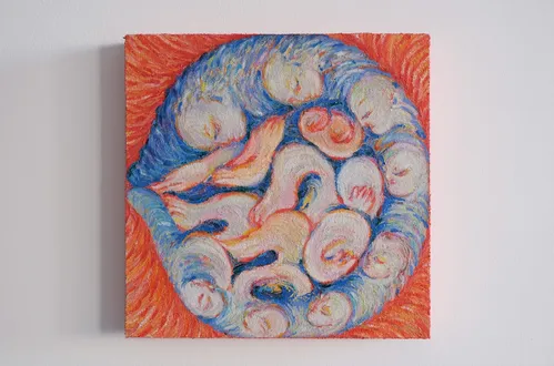 The four works by Canadian artist Bonafini, meanwhile, capture transitory states, made around the time she was pregnant. They are “reminiscent of what she felt like her child was going through,” as Sharma noted.