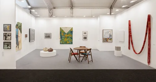 The booth also includes the gallery’s heavyweight artists, such as Rana Begum, who presents a series of gridded minimal abstract paintings.