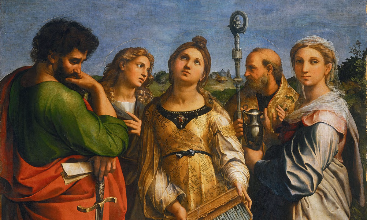 The Modello Drawing for the altarpiece painting The Ecstasy of Saint Cecilia (around 1515-16). The drawing has now been reattributed to Raphael