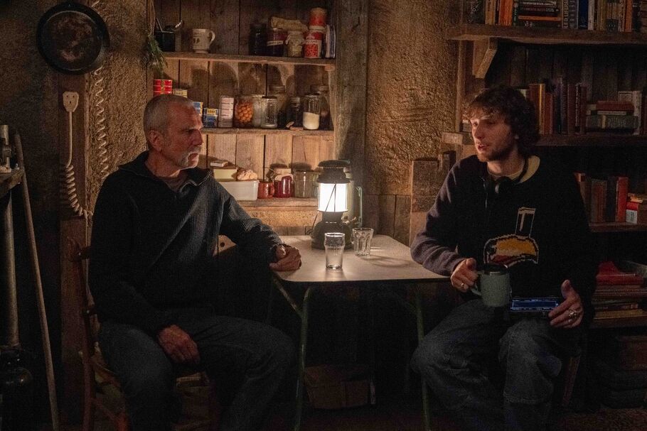 Portrait of Daniel Day-Lewis and Ronan Day-Lewis on the set of Anemone. Photo by Maria Lax / Focus Features. © 2025 Focus Features, LLC. All Rights Reserved. Courtesy of Focus Features.