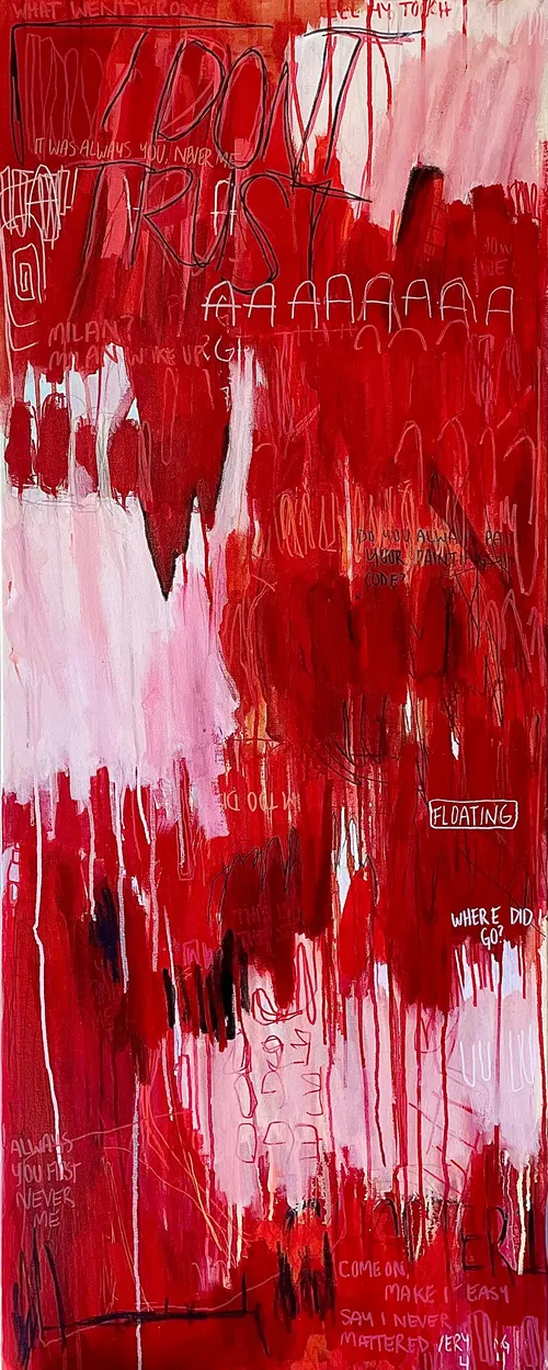 With their unconventional proportions and unusual use of space, ultra-vertical paintings trigger immediate attention from a visually fatigued audience. Whether they reveal or conceal more than we would usually see on a canvas, these works toy with our expectations and make us take another look. “The paintings frustrate because they refuse full disclosure,” said Giovanelli. “This combination—bodily confrontation paired with visual withholding—produces something that is simultaneously frustrating, enchanting, and mysterious.”