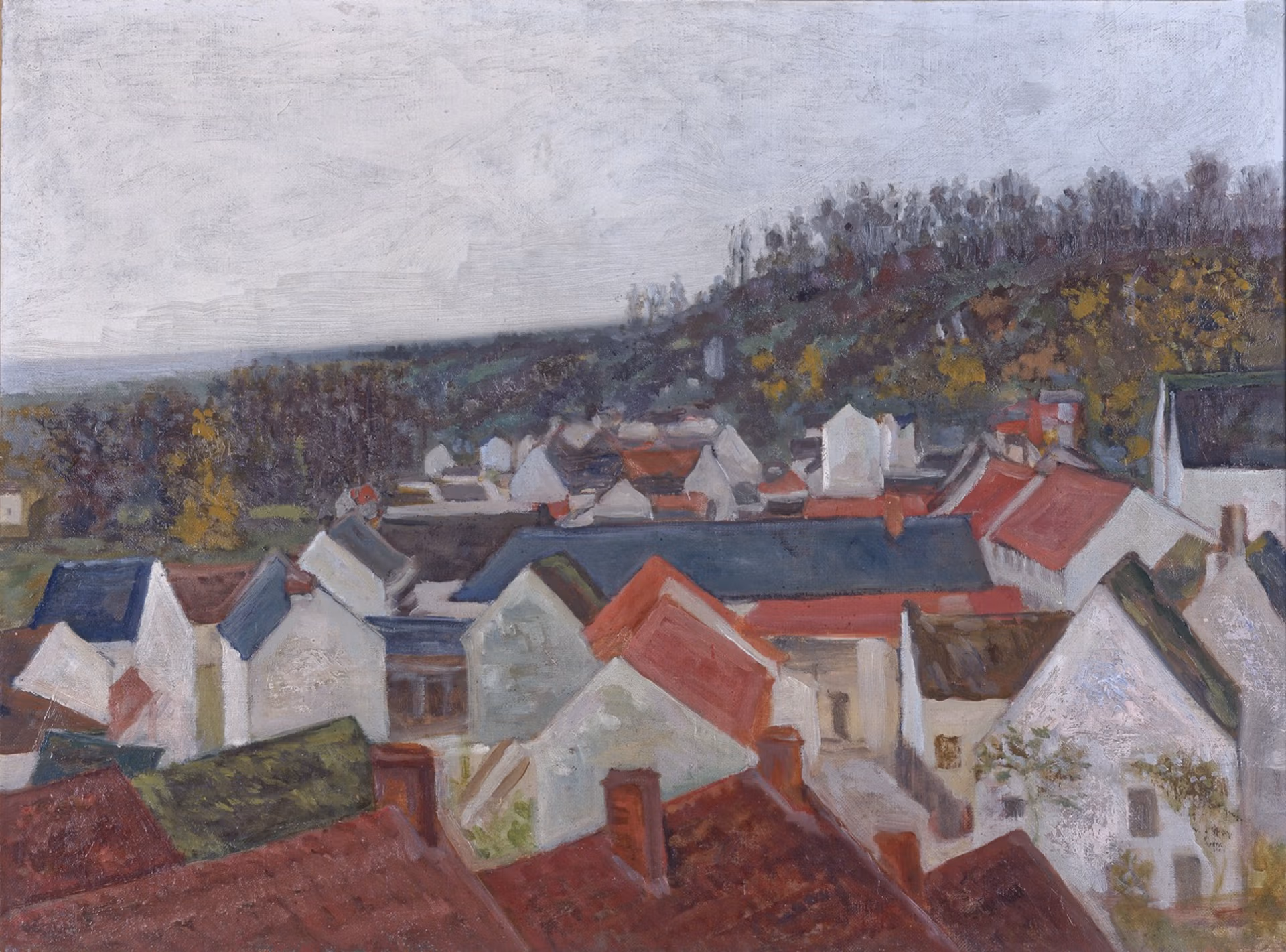 Two pictures by Dr Gachet, who painted under the name Paul van Ryssel, stand out. One is a landscape painted from his garden, which overlooks the roofs of the neighbouring houses on the other side of the road. Van Gogh knew the garden well, having made a number of paintings there, including his Portrait of Dr Gachet (June 1890). The view of the roofs can still be seen today, although the cluster of houses has become increasingly dense.