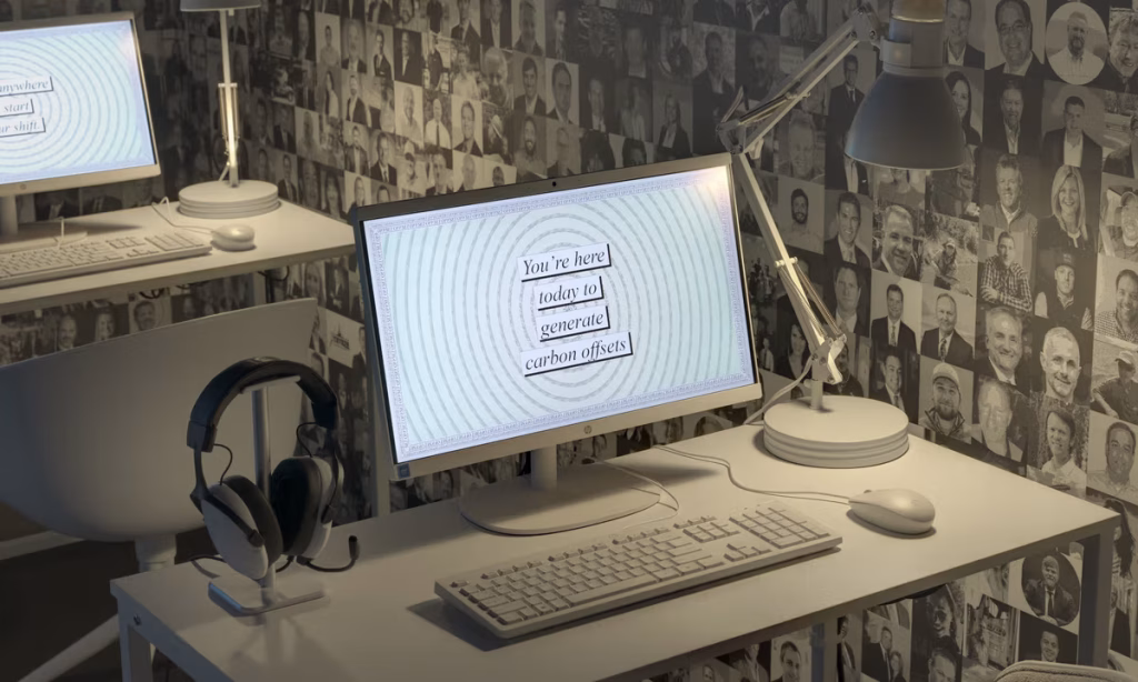 The Brooklyn non-profit space Pioneer Works currently houses an art installation in the form of a climate change call centre, Cold Call (2023), but the work’s point is not to solicit pledges. Instead, visitors are encouraged to don a headset, dial a fossil fuel industry executive and follow a script designed to keep that executive on the line as long as possible to impede their productivity. The installation is part of Tega Brain’s and Sam Lavigne’s clever exhibition, How to Get to Zero, which features an array of impish climate art with a serious side.