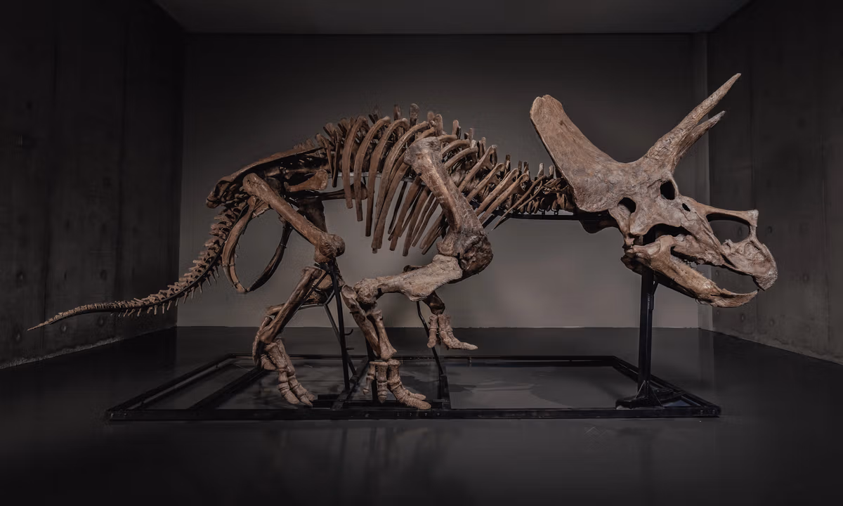 A 66-million-year-old skeleton of a young triceratops sold yesterday for $5.5m on Joopiter, the auction platform of the musician Pharrell Williams. This is a record price for a dinosaur sold via an online only sale.