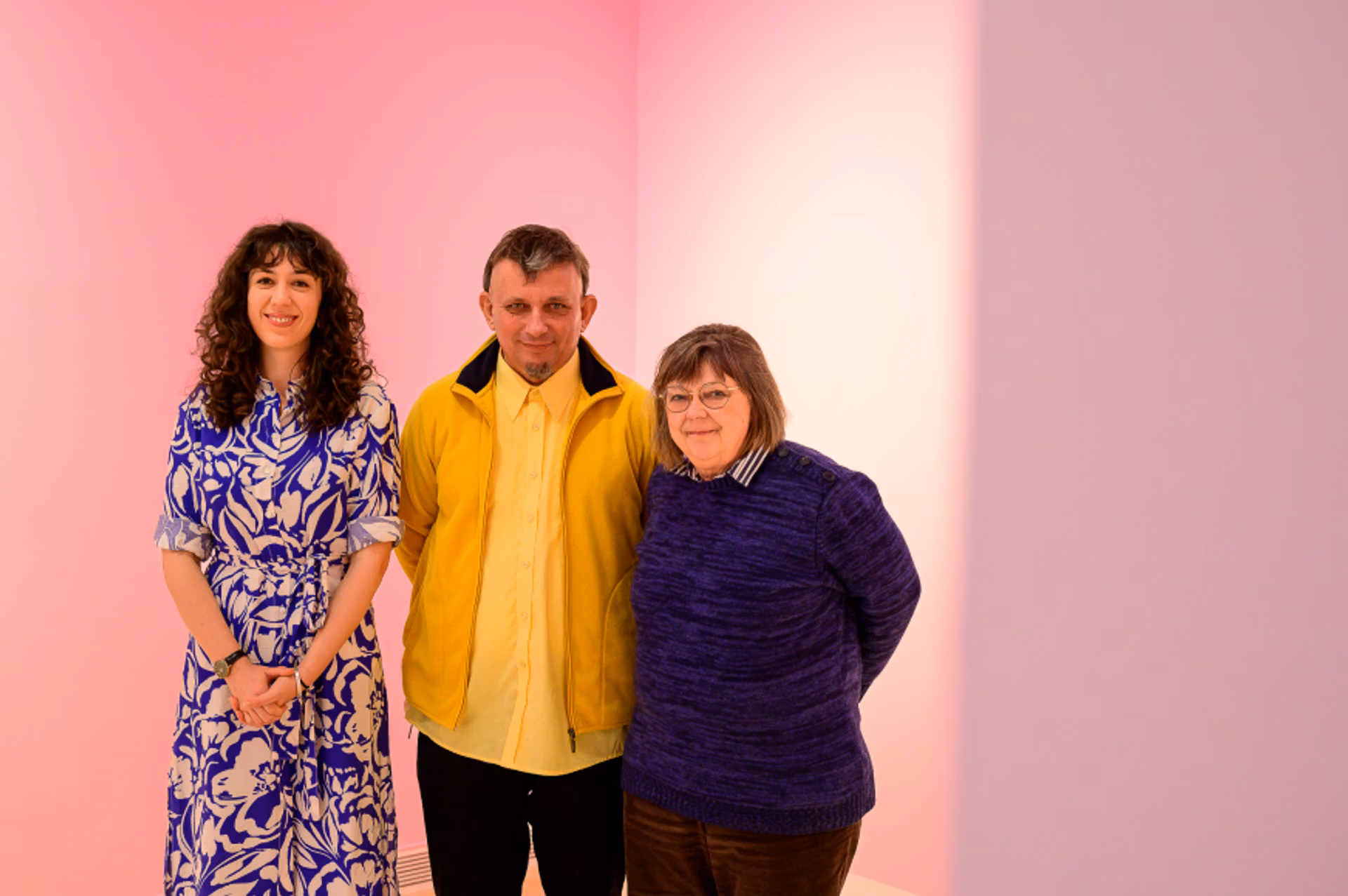 The curator Luca Cserhalmi, the artist Endre Koronczi and the commissioner Julia Fabényi Photo: Zsófia Szabó