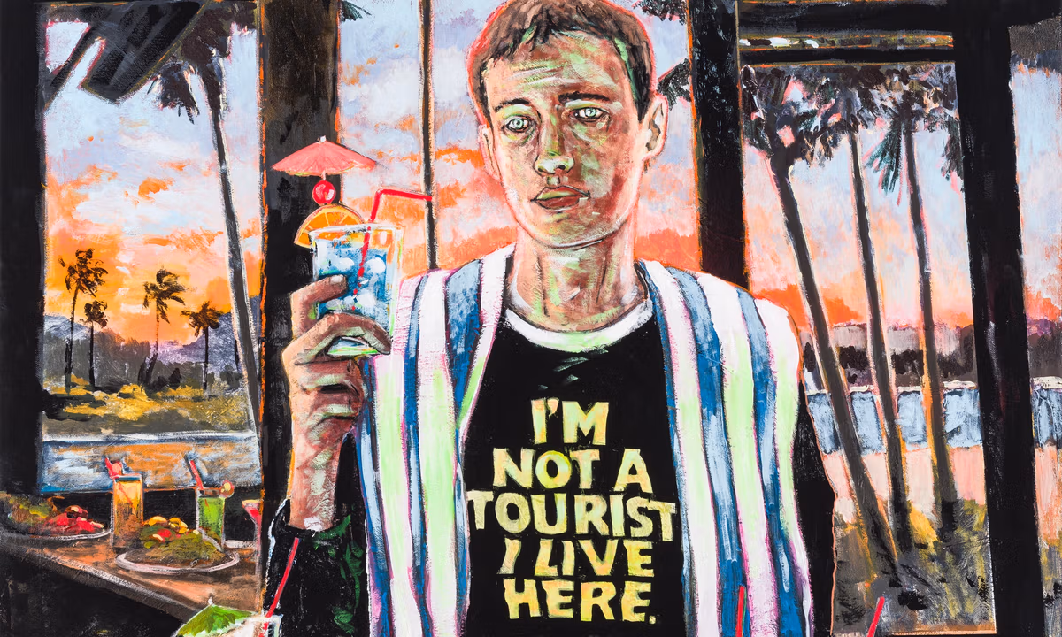 Bas begins with the visual memory of his hometown—the “vibrant, superficial, crowded and contradictory Miami”, Barisoni says, outlining the artist’s vision. The canvasses on show in the monumental rooms of the gallery will depict a procession of youths who represent cliches of the contemporary tourist, particularly North Americans and Europeans. “Many of these new figures appear caught in acts of performance or pretence; whether posing, taking photographs or assuming disguise,” an exhibition statement says. “One of Bas’s tourists claims resident status, another (American) poses as a Canadian and a further visitor to Thailand stages an encounter with a python.”