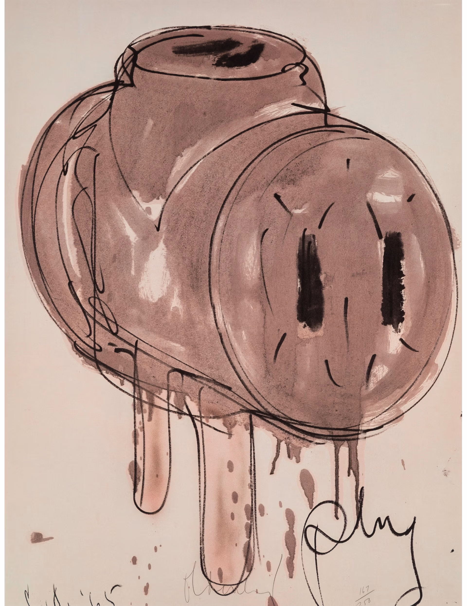 This lithograph of a three-way plug comes from Claes Oldenburg, the sculptor known for his larger-than-life versions of everyday objects like foods and domestic objects. His most famous work may be the massive badminton shuttlecock on the grounds of the Nelson-Atkins Museum of Art in Kansas City, Missouri that he created with his wife and frequent collaborator, Coosje van Bruggen. This work comes from the Hechinger Collection, a group of tool-themed 20th-century art collected by the late hardware pioneer John Hechinger and his wife June Ross Hechinger.