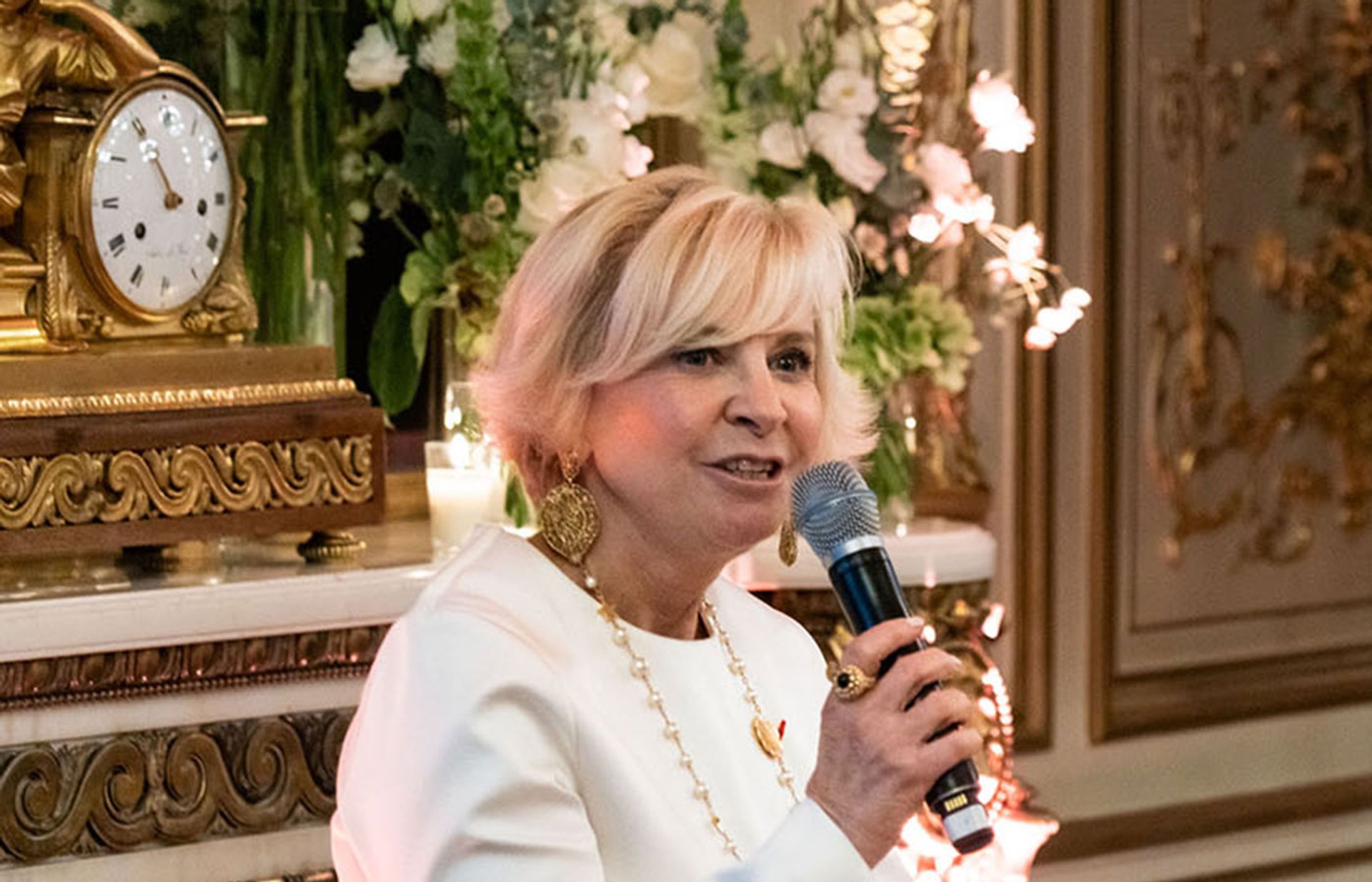 Bénédicte Epinay, president and chief executive of the Comité Colbert, addressing the Paris cultural table Courtesy the World Economic Forum and the J Paul Getty Trust