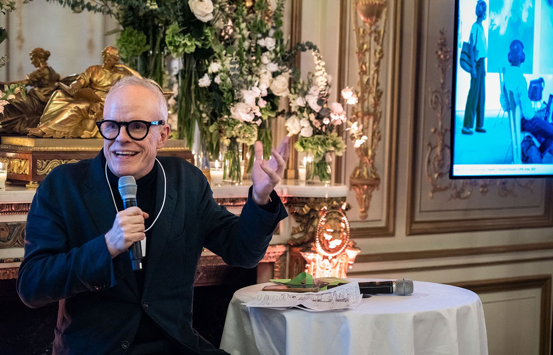 Hans Ulrich Obrist, the artistic director of Serpentine Galleries, London, speaking at the Paris cultural table Courtesy the World Economic Forum and the J Paul Getty Trust