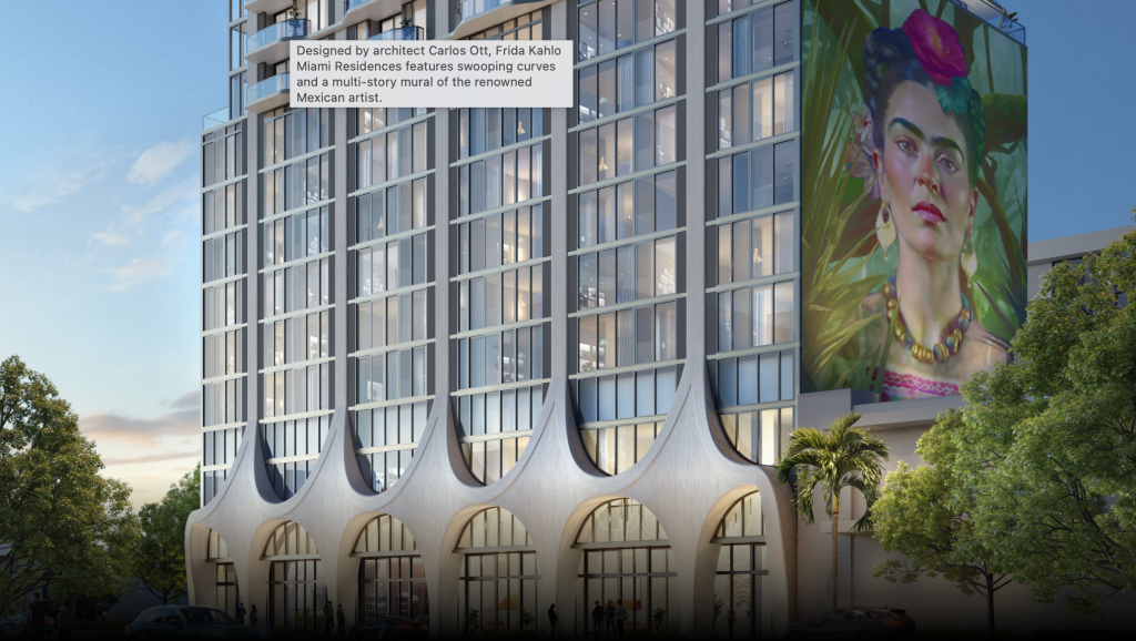 Condos in a Frida Kahlo-branded luxury condominium development in Miami went on sale this week, even though the project has yet to break ground. Promotional materials describe the planned residences as “inspired by Frida Kahlo’s expressive spirit.”