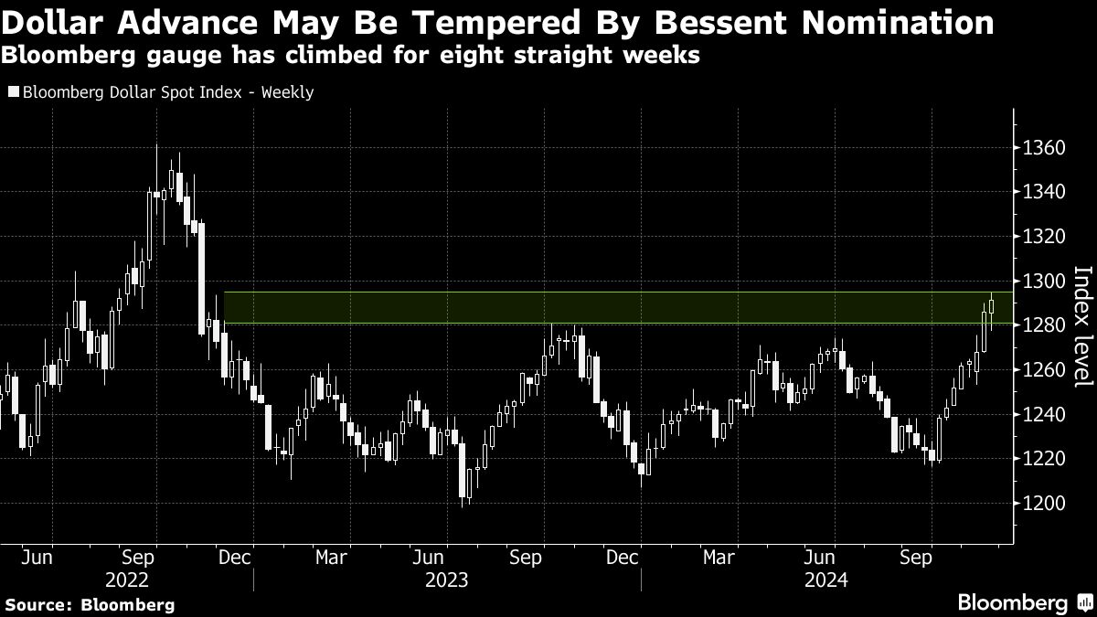 (Bloomberg) — Equities and Treasuries advanced, with traders embracing Donald Trump’s pick of Scott Bessent for Treasury Secretary as a measured choice that would inject more stability into the US economy and financial markets.