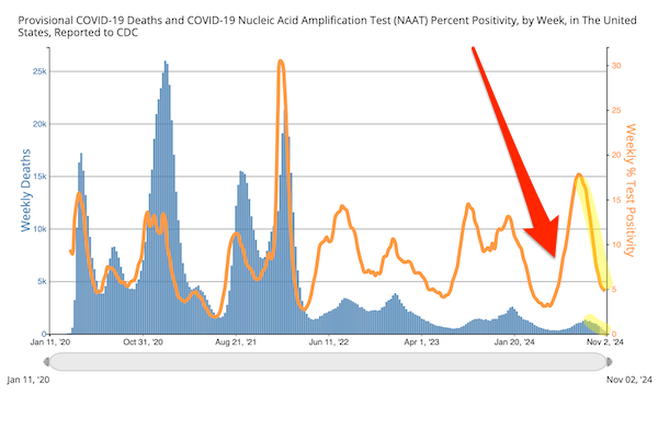 Weekly Deaths vs. % Positivity [11] CDC November 2:
