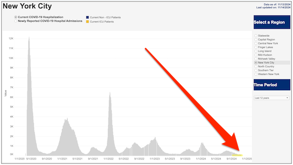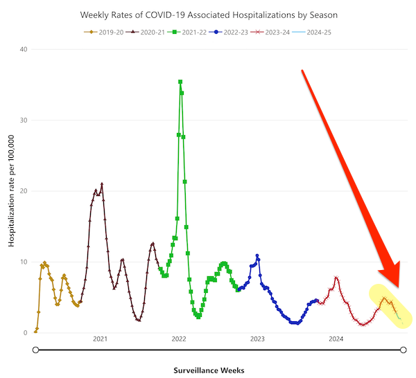 [6] (Hospitalization: CDC). Actually improved; it’s now one of the few charts to show the entire course of the pandemic to the present day.